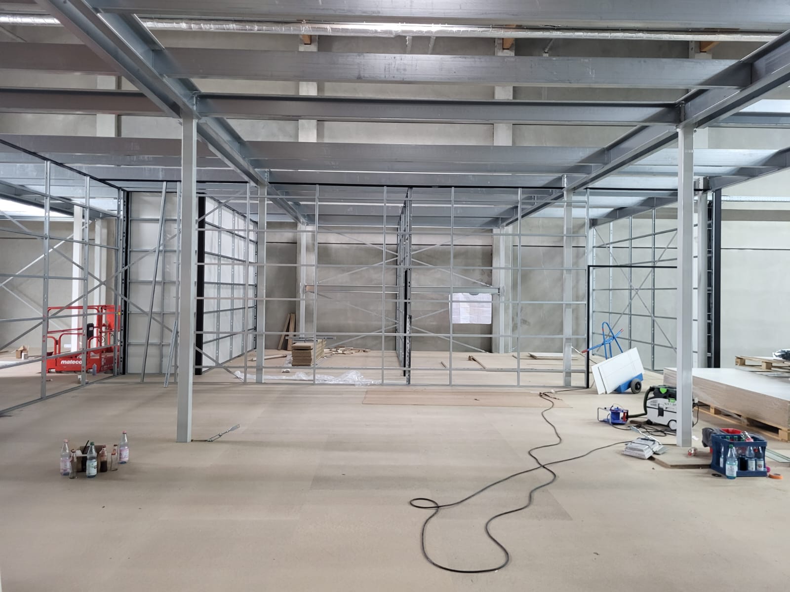 Wir arbeiten mit Hochdruck daran, eine beeindruckende zweigeschossige Büro- und Werkstattlandschaft zu schaffen, die unsere Erwartungen übertrifft!