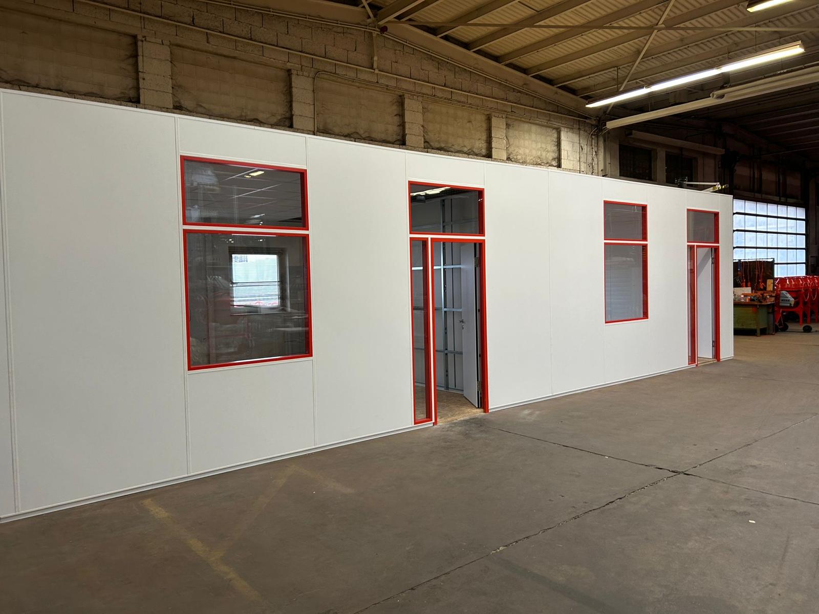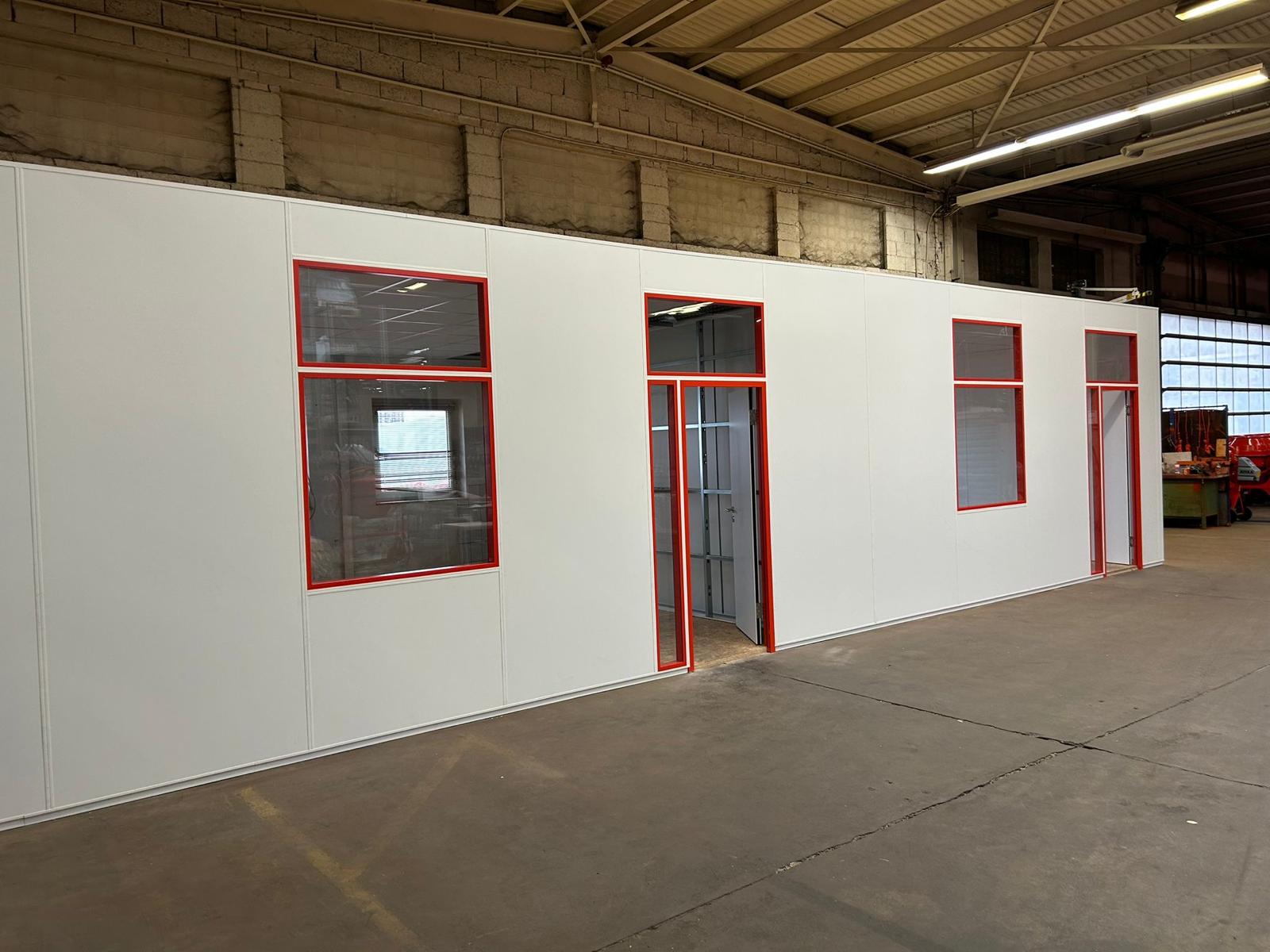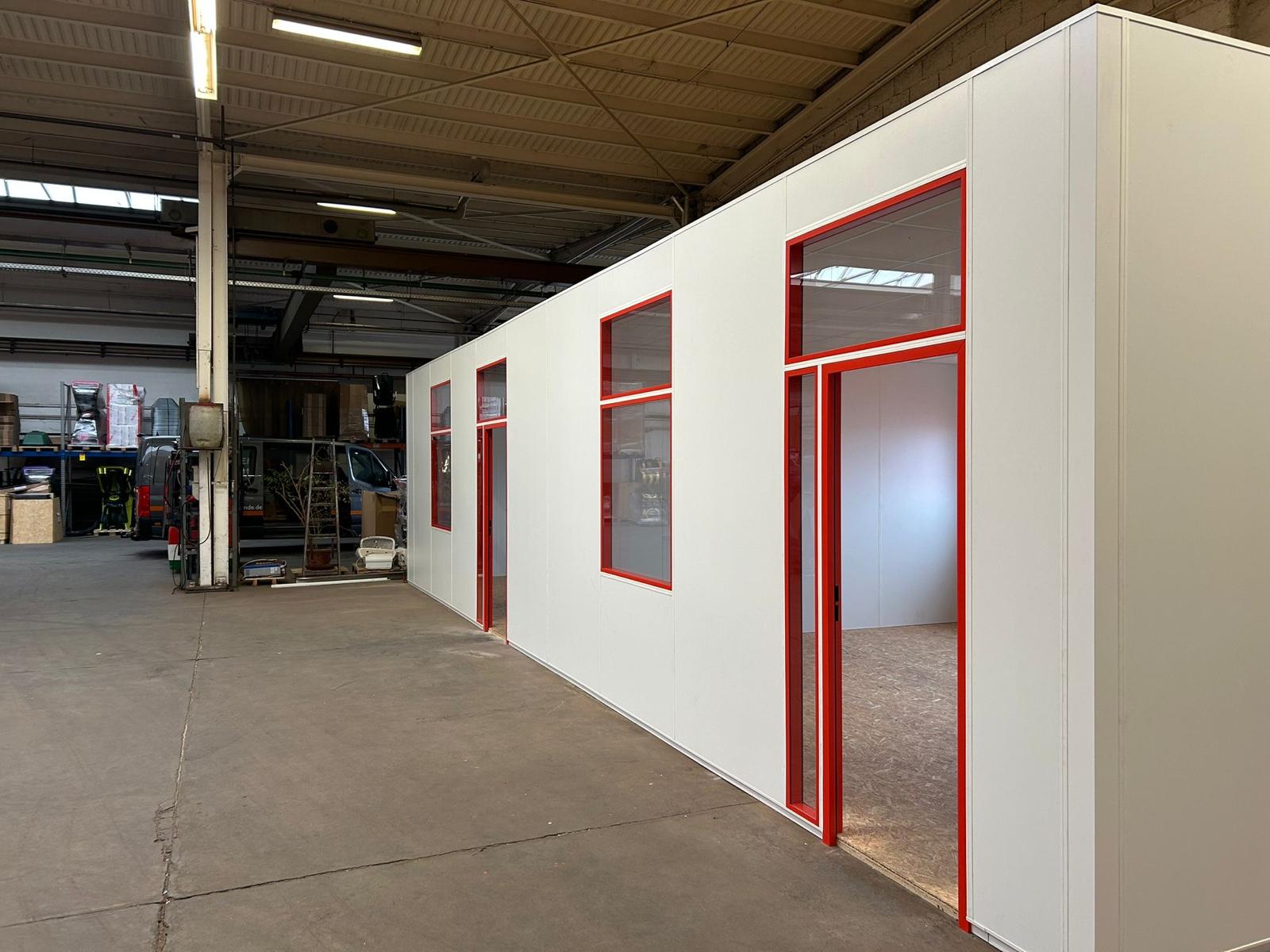 Für unseren Kunden durften wir ein freistehendes Hallenbüro System Styleline realisieren – mit Fenster- und Türzargen in Sonderfarbe!