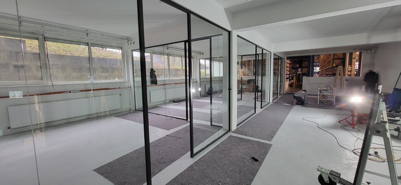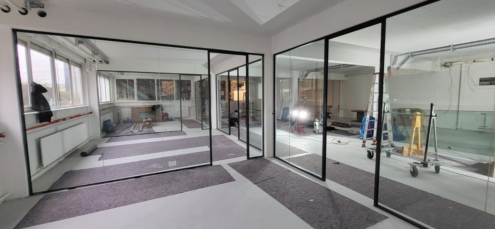 Für ein modernes und akustisch optimiertes Arbeitsumfeld haben wir in diesem Projekt das System Horizon von Maars verbaut – mit 12 mm VSG-Glas und einem geprüften Schallschutzwert von 36 dB.