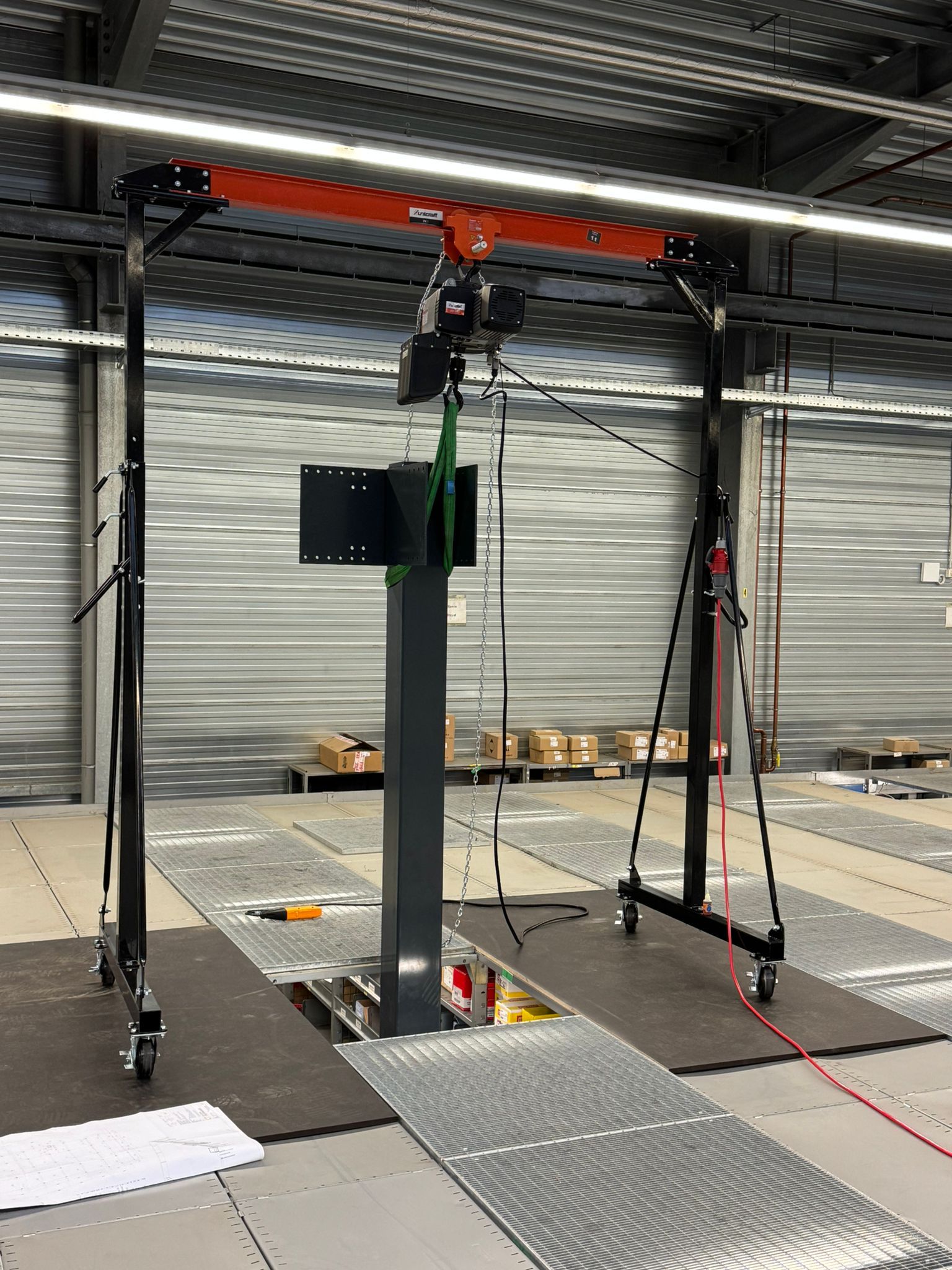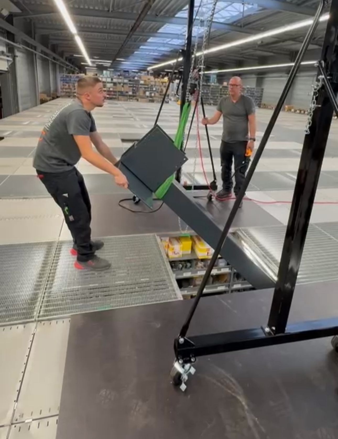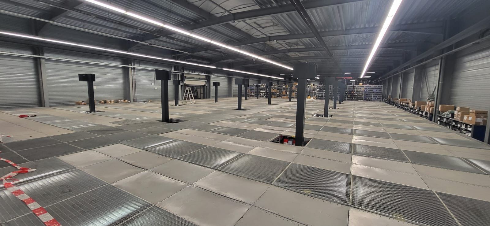 Für ein Großprojekt haben wir die 1.000 m² Profielnorm-Stahlbühne angeliefert. Da untertags unter der ersten Ebene gearbeitet wird, bleibt nur die Nacht, um die Stützen zu stellen – und unser Team packt es an!
